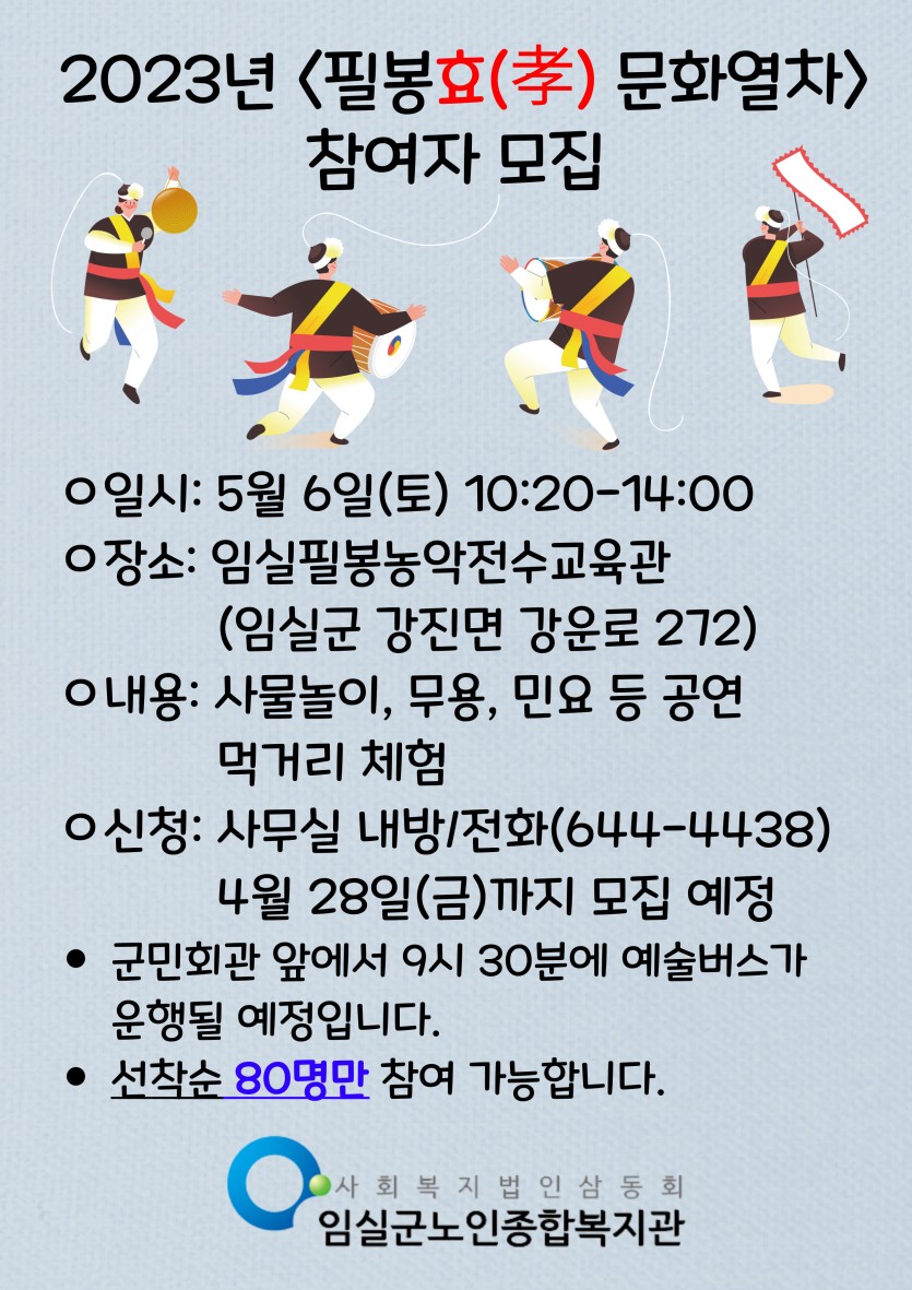 2023년 필봉효(孝) 문화열차 참여자 모집