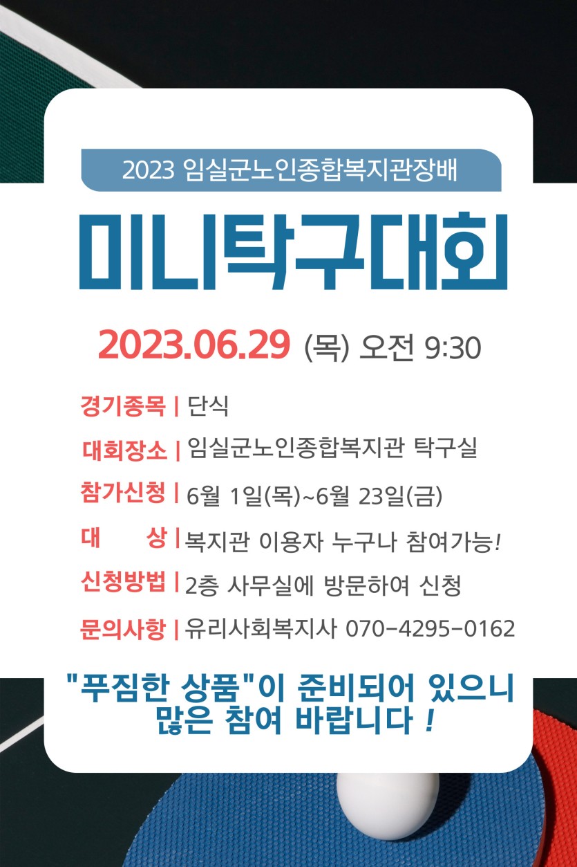 제1회 임실군노인종합복지관장배 '미니 탁구대회' 참여자 모집