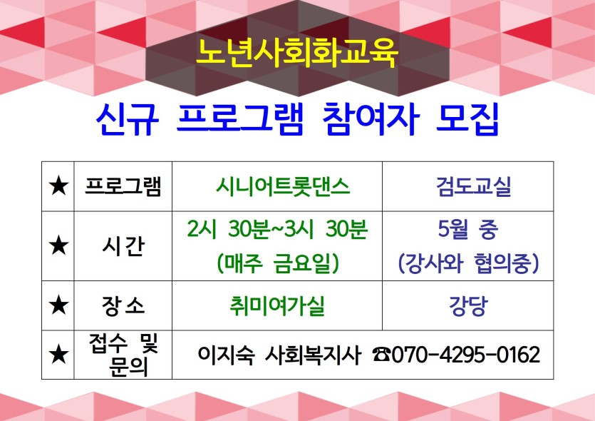 관심 있는 어르신들의 많은 참여 바랍니다.