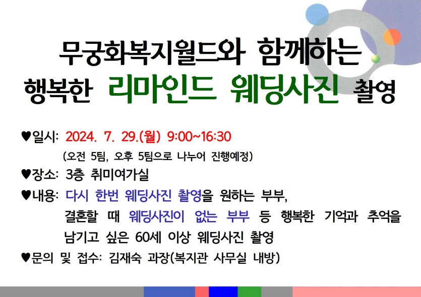 무궁화복지월드와 함께하는 행복한 리마인드웨딩 참여자 모집