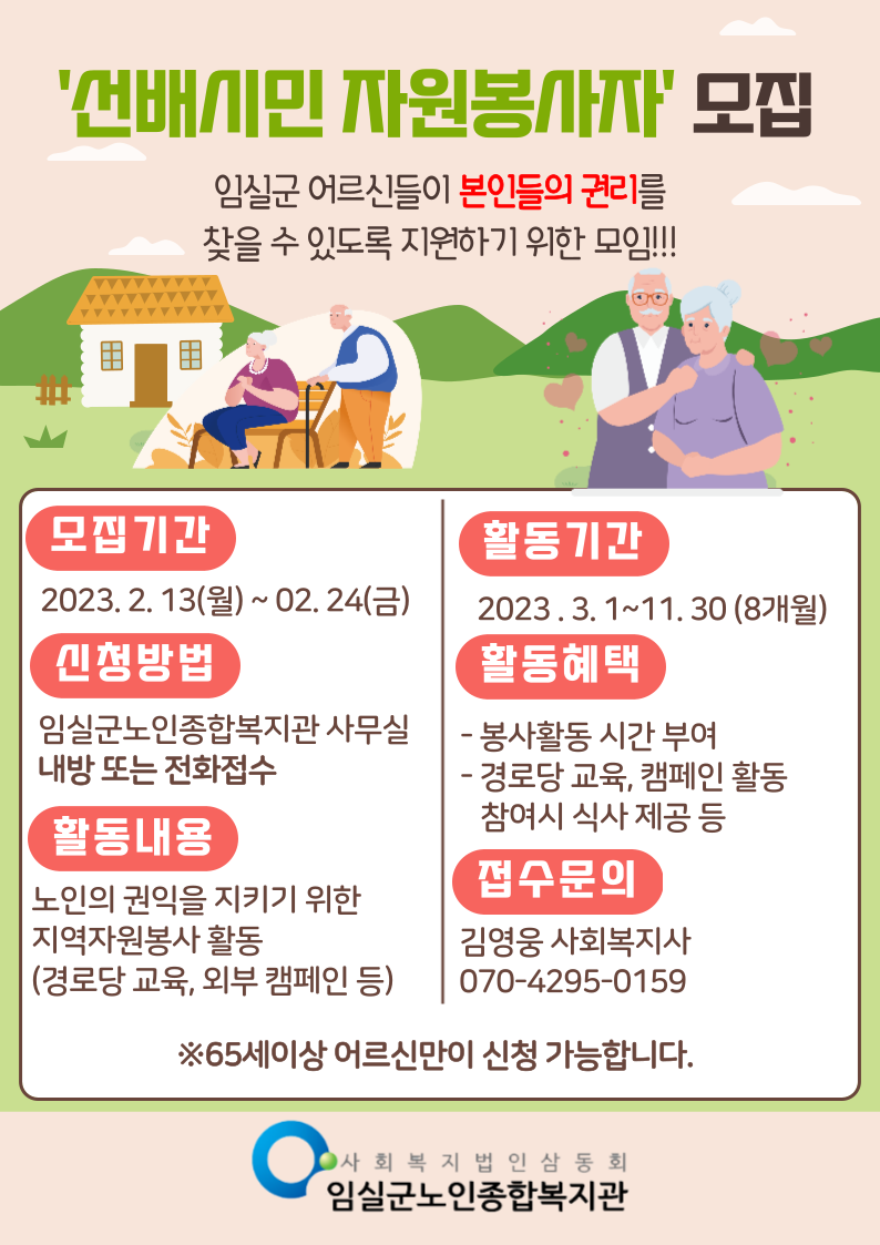 2023년 선배시민 자원봉사단 '노인권익지킴이' 모집