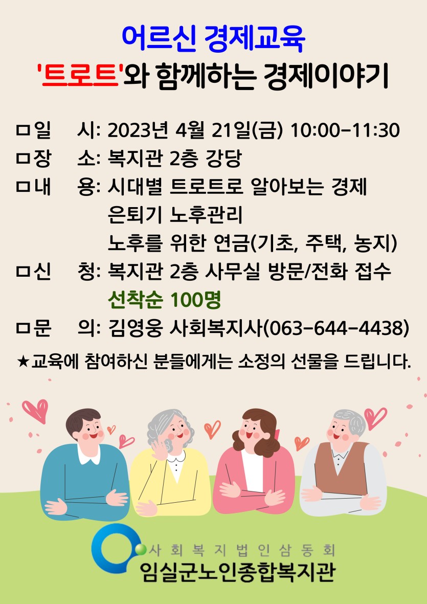 2023년 어르신 경제교육 참여자 모집(4월 21일 진행)