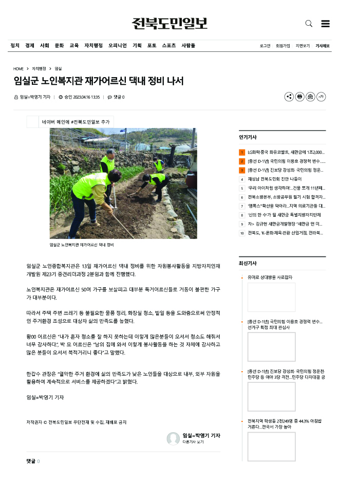 지방자치인재개발원 제23기 중견리더과정 2분임과 함께하는 재가어르신 댁내 정비